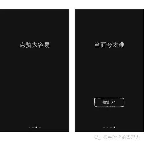我们开始怀念,我们开始质疑;对这样的情绪和暗流,微信的设计者们自然能敏锐洞察,在我更新微信 6.1 新版本时,就看到了非常「体贴」地照顾这种情绪的启动页面: