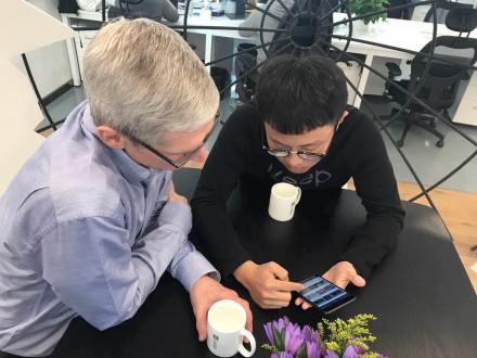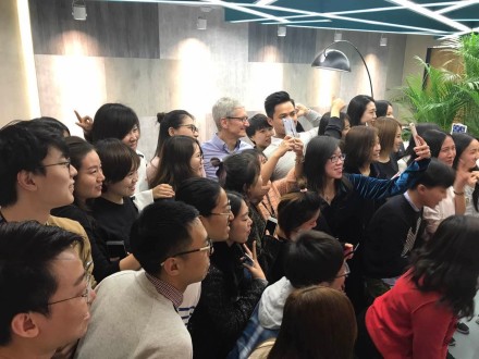 库克在Keep员工中得到了偶像级待遇,与他们一起自拍,来源:新浪