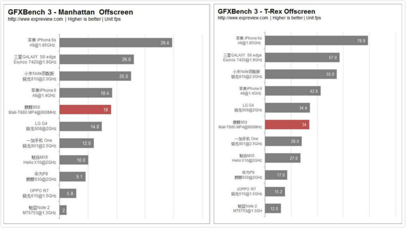 2015年11月发布的麒麟950,图形性能只相当于2014年秋发布的iPhone 6,落后整整一代。