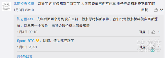 正如微博网友@弗斯特布拉德所说,储存原材料价格的上涨,导致整机成本上升,当然这是网友中少部分比较理性的声音。