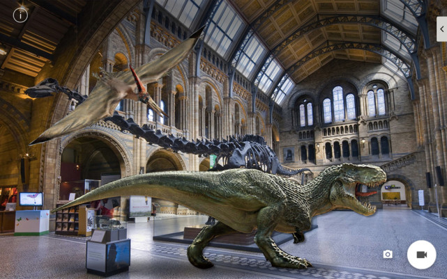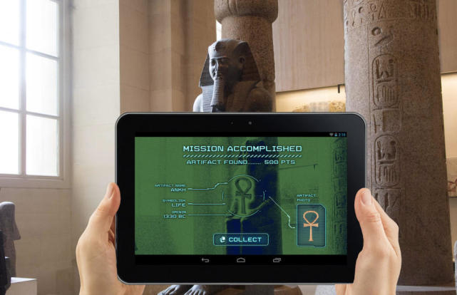 例如,大英博物馆推出了一个AR搜索功能,让孩子们使用移动设备来扫描特定的展览对象,从而收集词语和数字道具,来解决谜题。史密森国家自然历史博物馆也推出了一个移动应用:当孩子们把移动设备对准恐龙骨架的时候,就可以看到恐龙的复原图像。最近,克利夫兰艺术博物馆正在使用增强现实和Kinect自然运动技术来为参观者创造沉浸式的艺术体验。