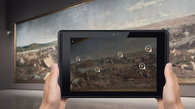如用户参观油画作品时,可以看到这副油画的创作时间、作者生平信息等内容;用户还可以直接与油画互动,获取油画中人物的介绍等信息。