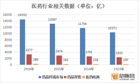 据相关统计,2016年药品终端市场规模14552亿,零售药店销售收入3377亿,B2C医药电商286亿,医药电商相比药品零售市场10%不到。