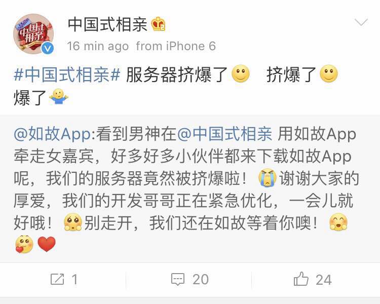 节目播出后,大波网友下载如故App,导致如故服务器直接被挤爆。邦哥发稿时,如故App在苹果App Store的搜索指数排到了第一。