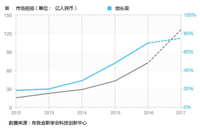 2016年,中国的移动医疗市场规模约70亿人民币;据预计,2017年将超过100亿人民币,预测增长率为74.5%。