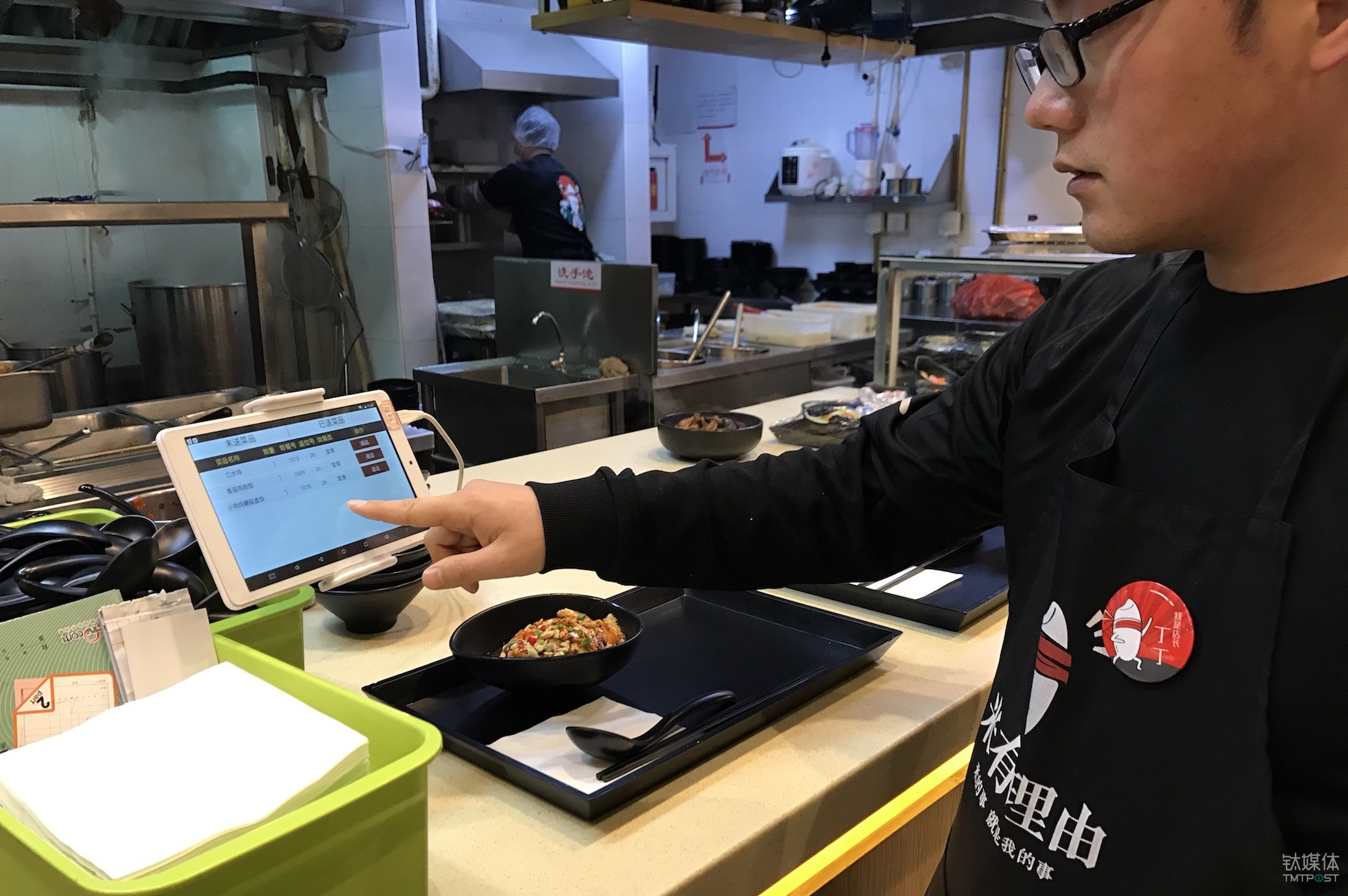 比如负责帮厨岗位的员工会在自己面前的显示屏中看到“备料信息”;负责炒灶的员工则会看到“制作信息”;负责打包的员工会看到“堂食或外卖信息”。而在员工熟悉操作系统后,100 多平米的餐厅只需要在后厨配备四个人即可满足全天就餐需求,人工成本要比同类餐厅降低约40%。