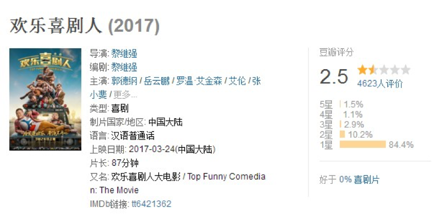 截止上映首日晚十点,《欢乐喜剧人》在豆瓣都因评论人数不足无法显示分数。