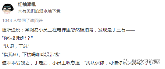 除此之外,在知乎上,丁磊还有借员工50元买咖啡、和员工抢车等关于节(抠)俭(门)的小道消息传闻。