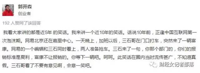 据知乎网友@回马一板砖称,当时采访者问丁磊为毛要用自认为高端清新的花田换掉网易同城约会?结果三石就粗口了,表达了对约会产品里小姐招嫖的愤怒。