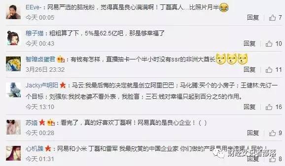 财经作家吴晓波也曾说:在他接触过的中国亿万富豪里面,只有网易掌门人丁磊,最快乐自在。