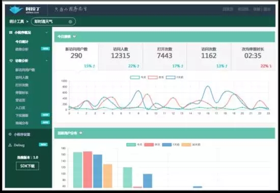作为一个微信小程序数据统计分析工具,开发者在小程序后台插入阿拉丁SDK统计代码,尤其是微信开放了新功能之后,便可同时监控线上、线下多个渠道的数据。阿拉丁将这些后台数据以网页形式反馈给开发者,帮助其优化产品、推广运营。