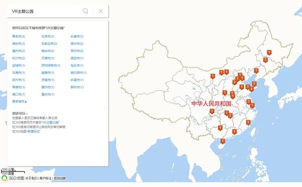 预言家使用360地图搜索了“VR主题公园”关键字,