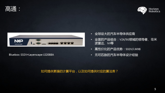 再者,高通现在拥有一些比较高性价比的产品组合。比如说它推出的BlueBox自动驾驶平台,这个其实是S32V视觉处理器再加上一个Layerscape的组合。跟像英伟达和英特尔这样比较高端的数百美元甚至更高价格的产品比起来,S32V视觉处理器的价格其实只有二三十美元。亲民,是它能够在汽车电子领域有高占有率的关键因素之一。