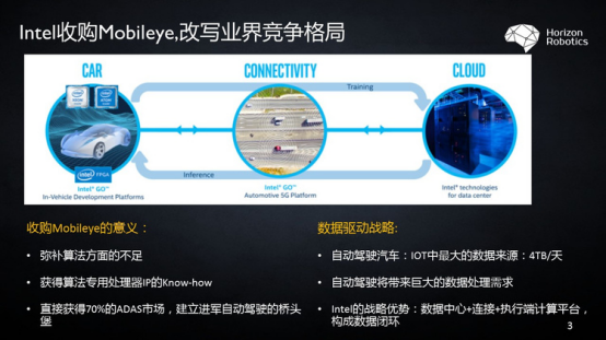 首先,在整个战略上,英特尔借助Mobileye弥补了自身算法的不足,同时获得了针对于专用的ADAS算法所设计的专用处理器IP,最为重要的是,通过这次收购,英特尔获得了70%的ADAS市场,这样就使得它与主机厂建立了一个非常稳固的业务联系。
