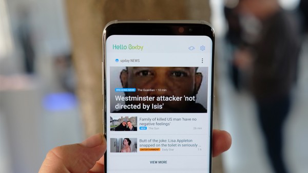 侧面除了电源/唤醒键和音量键之外,我们看到在Galaxy S8+的侧面还多出了一个物理按键,而这个按键是专门为Galaxy S8+上搭载的Bixby语音助手所准备的,并且用户只需要按下这个按键就能快速激活人工智能语音助手。