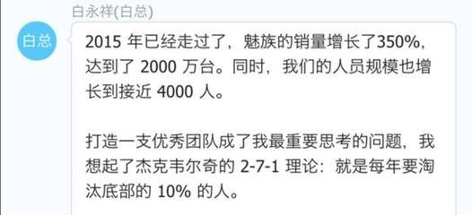 魅族官方发言人则表示“今年魅族确实有10%的裁员计划,但与去年类似,是正常的人员流动优化。主要是因为公司进行人才结构优化,优化组织结构是比较正常的一个人事行为,只不过从去年的5%提高到了10%,主要为上市节约成本。”为了“打造一支优秀团队”,魅族员工数量已经达到4000人,每年都可能淘汰掉尾部10%的人,而这次裁员5%,可以看做是企业常见的末位淘汰。