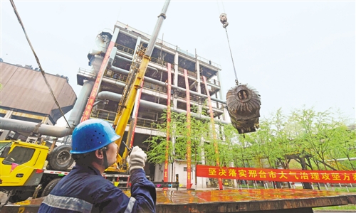 4月4日,位于河北省邢台市的德龙钢铁有限公司工人冒雨拆除竖炉。当日,“服役”15年的德龙钢铁10㎡竖炉被拆除,邢台市大气污染治理攻坚行动打响“第一枪”。赵永辉摄