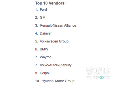 福特和通用这两家公司都已经超过100岁,用一个多世纪来研发、生产、测试、销售汽车,在整个产业链当中的地位非常高。这份报告指出,福特和通用的自动驾驶技术其实并非最领先,但凭借多年来在汽车行业的深耕细做,使得他们在排名中非常靠前。