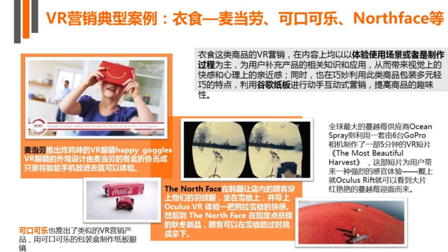 到了数字营销的后期,用户与广告之间的“参与感”增强了,活动式的网站和H5等都让广告看起来不像是广告,而是游戏,另外数字媒体时代,用户情绪可以通过留言评论及时的反馈过来,都是一种参与感的展示。而VR是将“参与感”做到极致的一个新媒介。从VR的设定上,本身用户就是作为一个角色出现在里面。