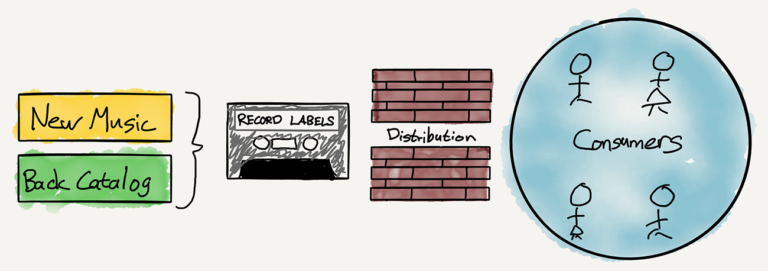 音乐行业的巨大差异在于,唱片公司以专辑为基础的陈旧商业模式已经被摧毁,当没有什么可失去的时候,改变就容易了。