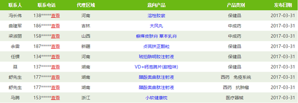 某网站挂出的医药自然人代理信息