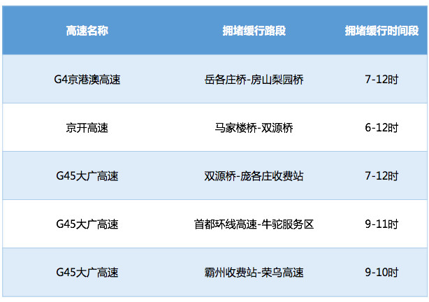 而在河北段则新增了两个拥堵路段,分别是G45大广高速首都环线高速交汇到牛驼服务区,以及G45大广高速霸州收费站到荣乌高速交汇。