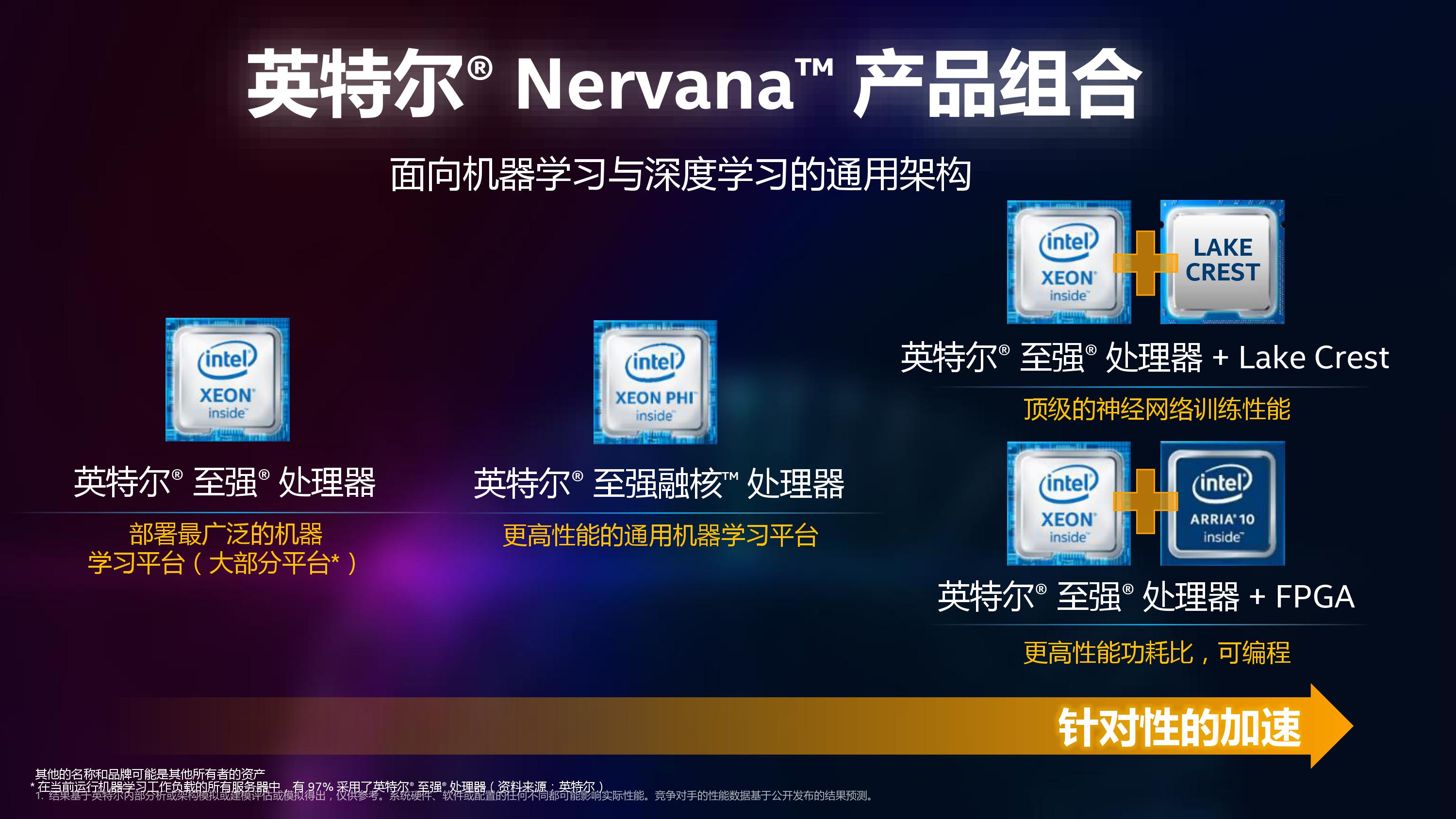 众所周知,英特尔奉行的战略是专注通用计算芯片,但是在大规模并行计算领域先天不足,如果想要适应人工智能的计算方式,必须得进行相应的升级调整,即所谓的异构计算,说白了就是在传统CPU计算方式的基础上搭载其他计算单元。