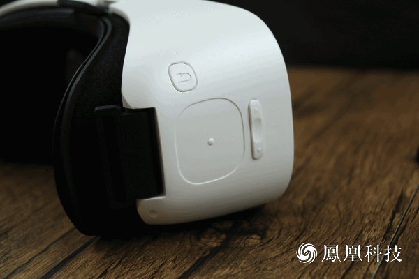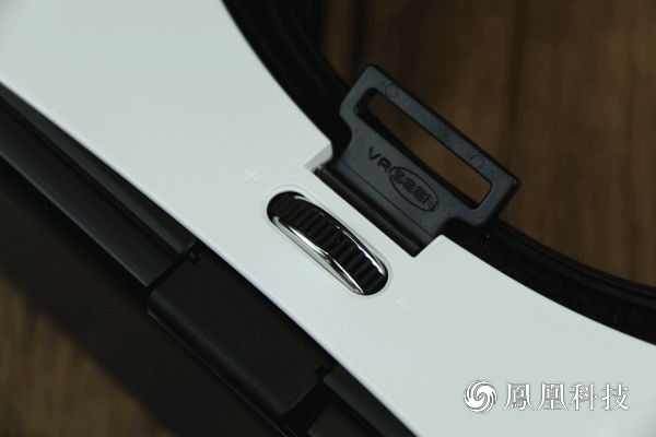 这款设备其实比较简单,和一般夹手机使用的VR眼镜没有太大区别,黑白配色也比较简洁。它的左侧配有触控板、音量键和返回键,是这类设备常见的设计。顶部则是支持最大600度的近视调节,方便眼睛近视的用户使用。