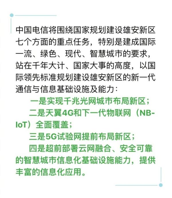 二是雄安新区网络通信基础设施、信息应用规划要坚持高起点,统筹调动集团及相关省分公司各方面资源,确保质量;