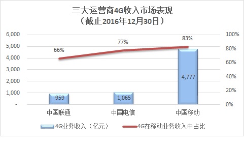 随着在3月下旬陆续发布2016年的财报,三大运营商交出了4G商用三年间的成绩单:中国移动一家独大的市场格局与中国联通一蹶不振的营收表现形成了鲜明的对比。