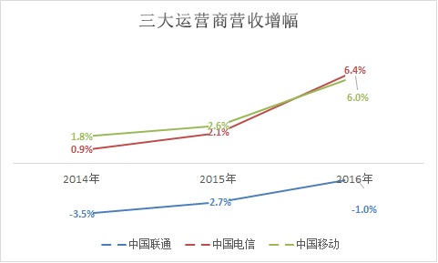 而错失4G先机的中国联通则继续在负增长的谷底徘徊,虽然2016年的业务收入降幅较上一年有所收窄(以4G为主力的移动业务收入同比增长仅1.7%),但经营利润率却从2014年的6.6%、2015年的3.9%一路下滑到0.98%,降幅高达75%且不见起色。