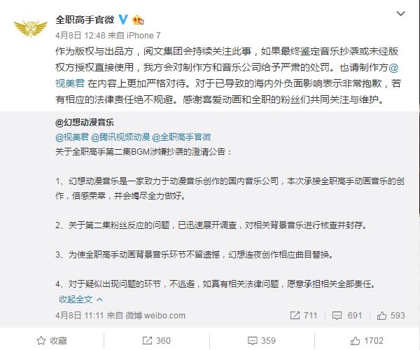 对此,官方第一时间在微博作出了解澄清公告。表示如果调查为真,会对“制作方和音乐公司给予严肃的处罚”。
