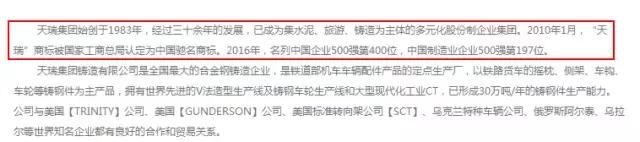 据天瑞集团官网显示,自1983年成立以来,天瑞集团是一家集水泥、铸造、旅游、矿业、商贸物流、金融等产业为一体的大型股份制企业集团。2016年,名列中国企业500强第400位,中国制造业企业500强第197位。