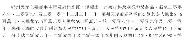 对于郑州天瑞的股权转让,也有同样的情况。2004年,河南新乡投资公司以160万元购入了郑州天瑞2.91%的股权,2007年又以同样的价格将股权卖给了中国天瑞水泥。前述交易价格同样也是参考注册资本。财报显示,2008年郑州天瑞的净资产为5160万元,收益为3710万元。
