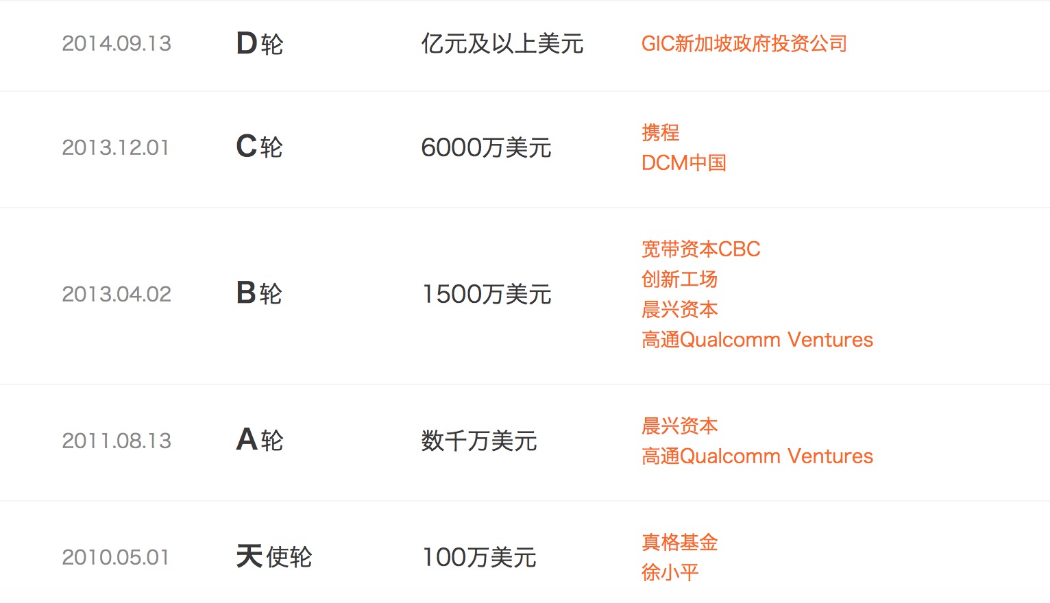 2014年以前,易到用车独占中国的专车市场老大的地位,先后完成D轮融资: