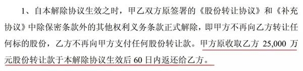 根据此前双方协议,任何一方如有违约,另一方有权随时解除本协议,并要求违约方按照违约所涉及争议金额的5%向守约方支付违约金。但万家文化除了退还了2.5亿元股权转让款之外,本着不追究的态度,同时也放弃了1.5亿元的违约金。