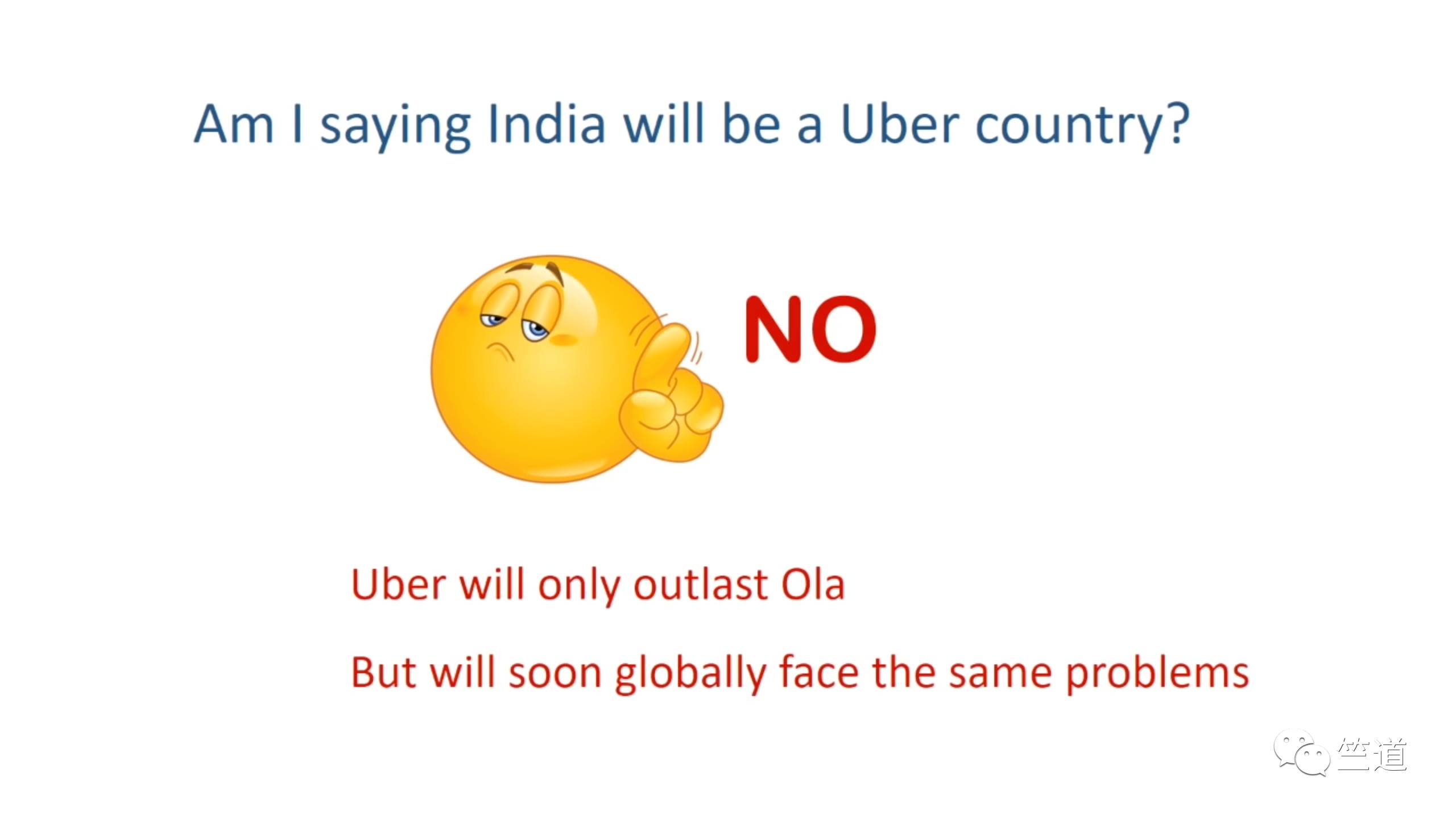 一旦Ola停止烧钱,开始追求利润。在一个被烧钱催热的市场里,提高服务价格是无法保持竞争优势的。国际巨头Uber完全可以利用全球资源,在短时间内继续烧钱补贴赢得市场。