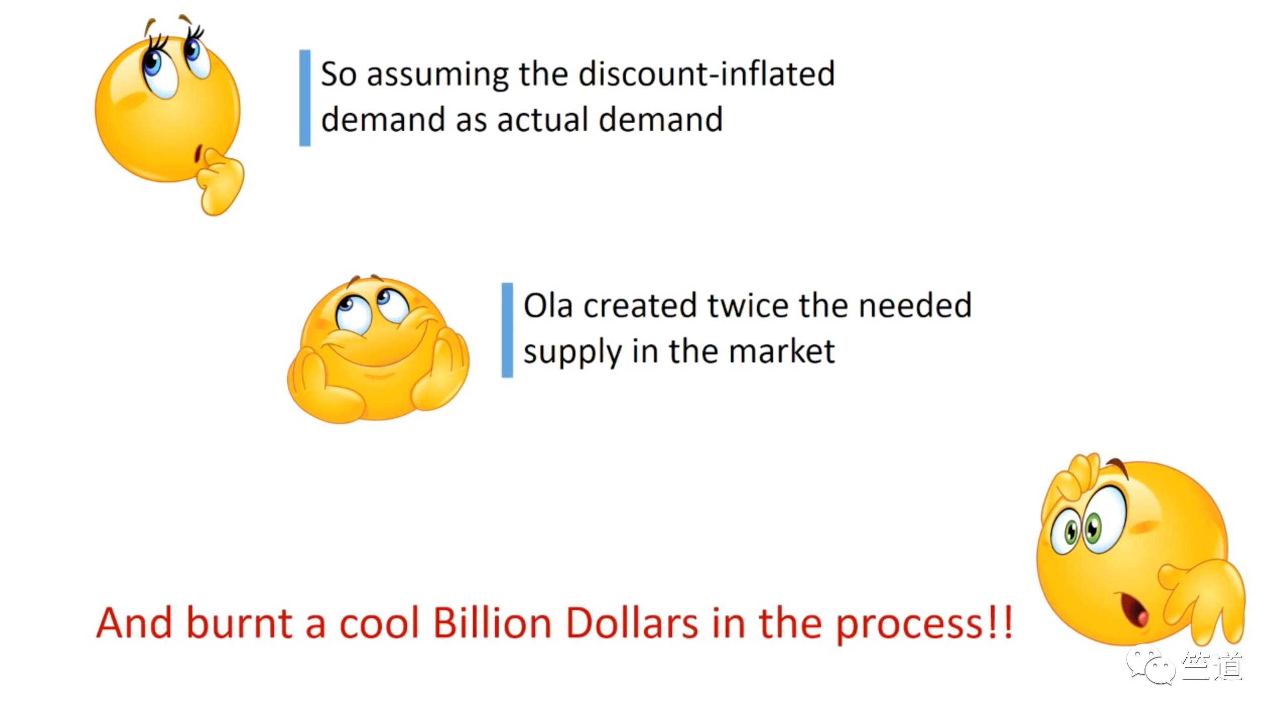 根据上图显示,Ola的同时对消费者和司机两端进行补贴,进而促生出了严重超出了正常范围的需求和供给。
