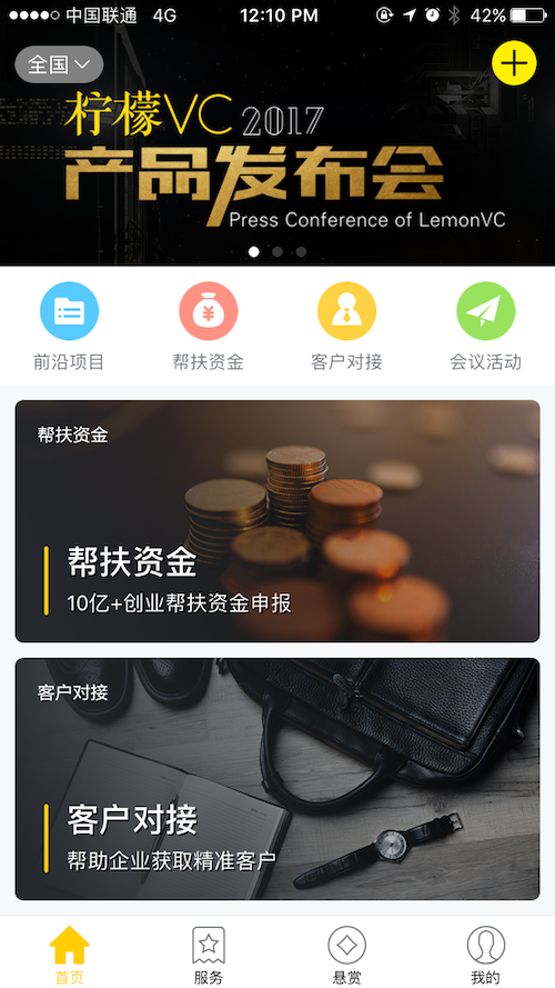 全新改版后的柠檬VC手机应用(安卓&IOS均可下载),除了一改往日的卡通风格,冷色系的主题凸显了商业化与互联网化,对服务类型他们也进行了全面升级,将更加专注于为企业获取“精准客户”与“帮扶资金”,促进初创企业的良性发展。