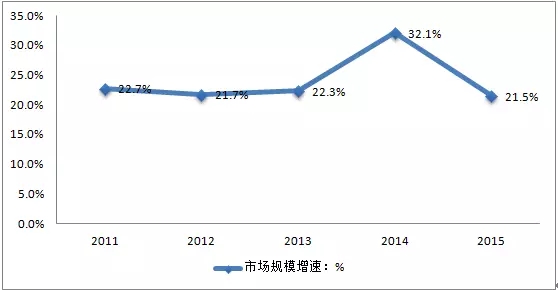 ▼2011-2015年搏击行业市场规模增速