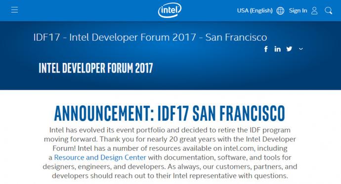 本次IDF峰会曾经有传闻称将在中国举行。随后英特尔表示,中国大会取消,但是IDF 2017会继续在旧金山举行。然而,没过多久英特尔就宣布彻底取消。