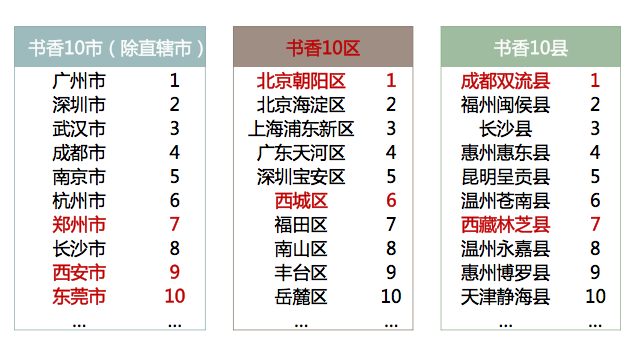 广东惠州市惠东县和西藏林芝地区林芝县冲进前10,福建泉州市惠安县和福建莆田市仙游县掉队。最近备受关注的河北雄安新区下属三县,安新的图书消费略高于雄县和荣城。