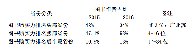 报告显示,与2015年对比,2016年图书消费相对均衡,全民阅读及消费鸿沟持续收窄。