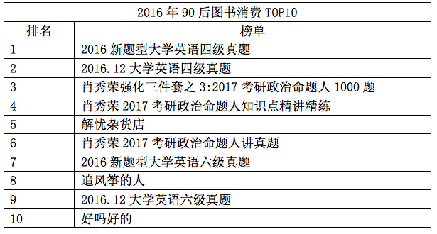 90后当下正全线步入高等教育年龄段,是教辅消费主力军,也是图书消费的增速担当。