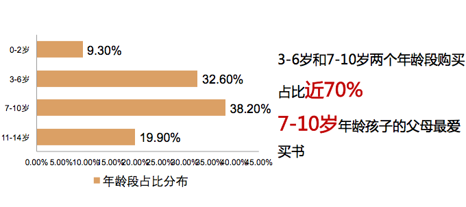 3-10岁是儿童阅读主要年龄段,占整体童书消费超70%;年龄段分布于3-6岁和7-10岁的当当小读者,分别占32.6%和38.2%。0-2岁宝宝父母给娃买书增速最快,婴幼儿阅读是未来中国童书的新关注点。(本文首发钛媒体,记者/谢康玉)
