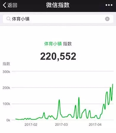 ▼进入2017年,体育小镇的概念越发火热,微信指数可以作为一个侧面证据
