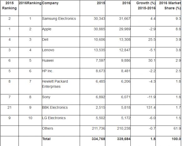 知名市场统计机构 Gartner 日前公布了 2016 年半导体芯片的采购数据,数据显示,排名前10的分别是:三星、苹果、戴尔、联想、华为、惠普(HP)、惠普企业(HPE)、索尼、BBK、LG。不知业内在此发现了什么,我们看到的其中有4家企业(戴尔、联想、惠普、惠普企业)至少是传统的PC和服务器厂商,也就是它们采购的芯片基本上是以英特尔的芯片为主,而鉴于华为已经在服务器市场超越了联想,我们也可以认为在华为芯片的采购中,除了手机芯片外,其在服务器芯片上的采购也应具有相当的规模。