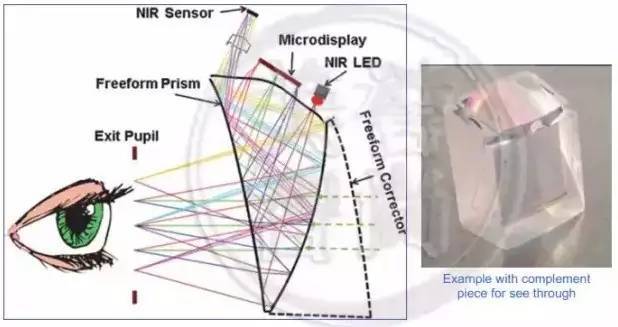相比之下,自由曲面棱镜的成本也不高,并且成像质量较高,镜片厚度较为适中,视场角更是能超过50度,但问题是体积较大,无法接近传统眼镜大小。