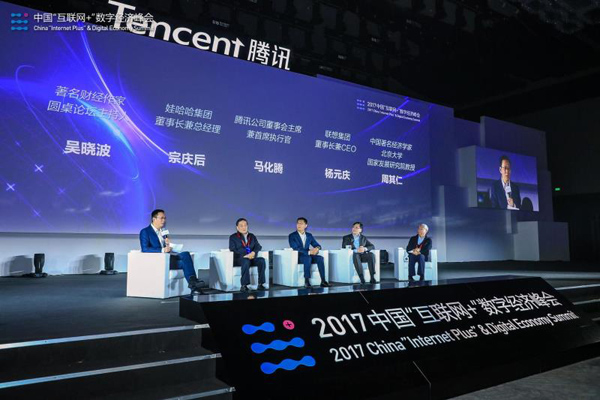 钛媒体注:今天(4月20日)在杭州举行的2017中国“互联网+”数字经济峰会上,腾讯公司董事会主席兼首席执行官马化腾、娃哈哈集团董事长兼总经理宗庆后、北京大学国家发展研究院教授周其仁、联想集团董事长兼CEO杨元庆,以及财经作家吴晓波同台探讨了“互联网+”赋能经济转型。