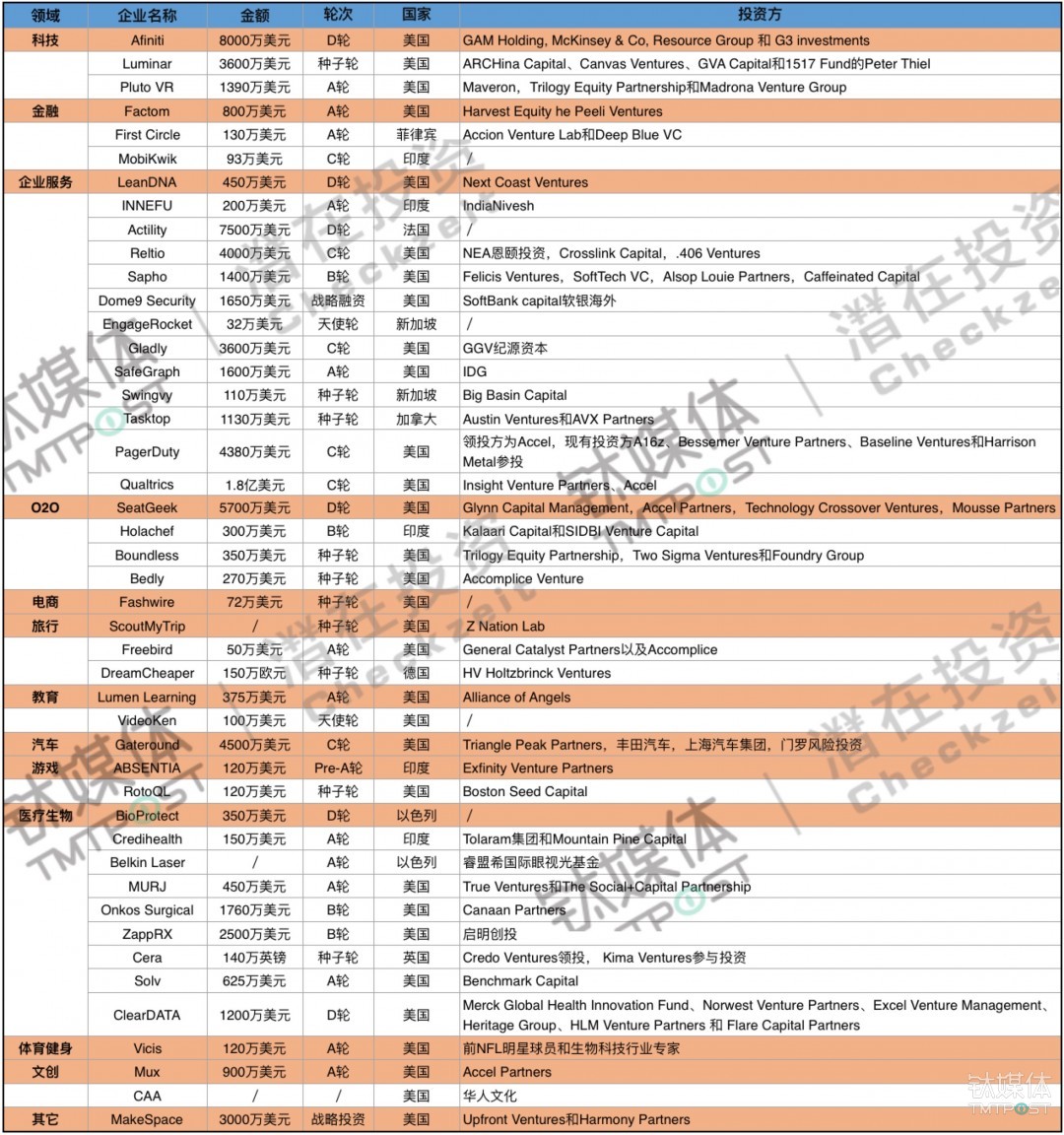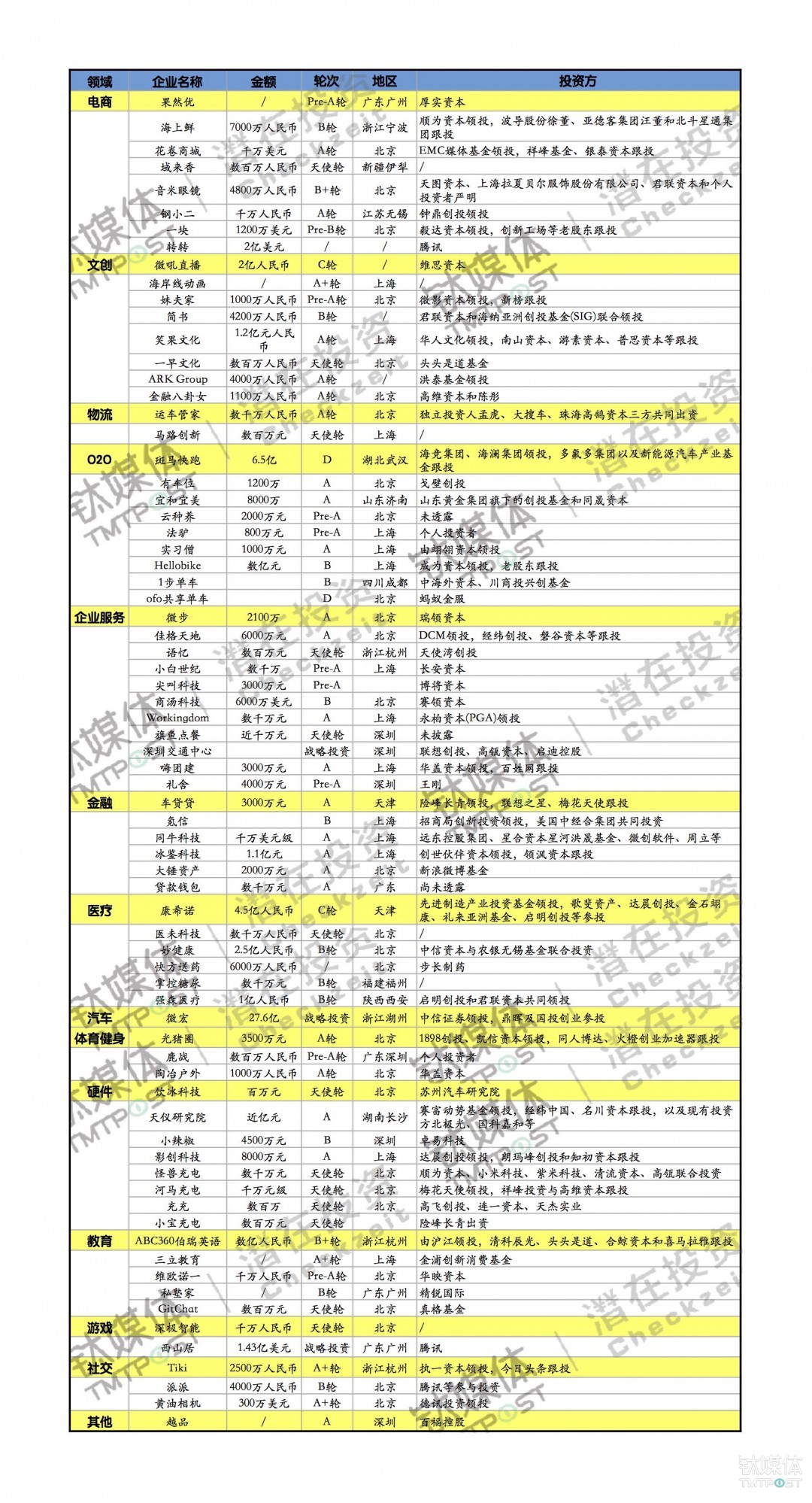 ✔️. 本周潜在投资家收录了国内74起重大融资事件,较上周增幅高达57.4%。主要分布在电商、文创、O2O、企业服务、金融、医疗、硬件、教育8大领域。其中……